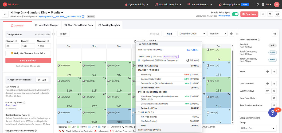 Price Dynamic Pricing & Portfolio Analytics, £5.36 per room per month