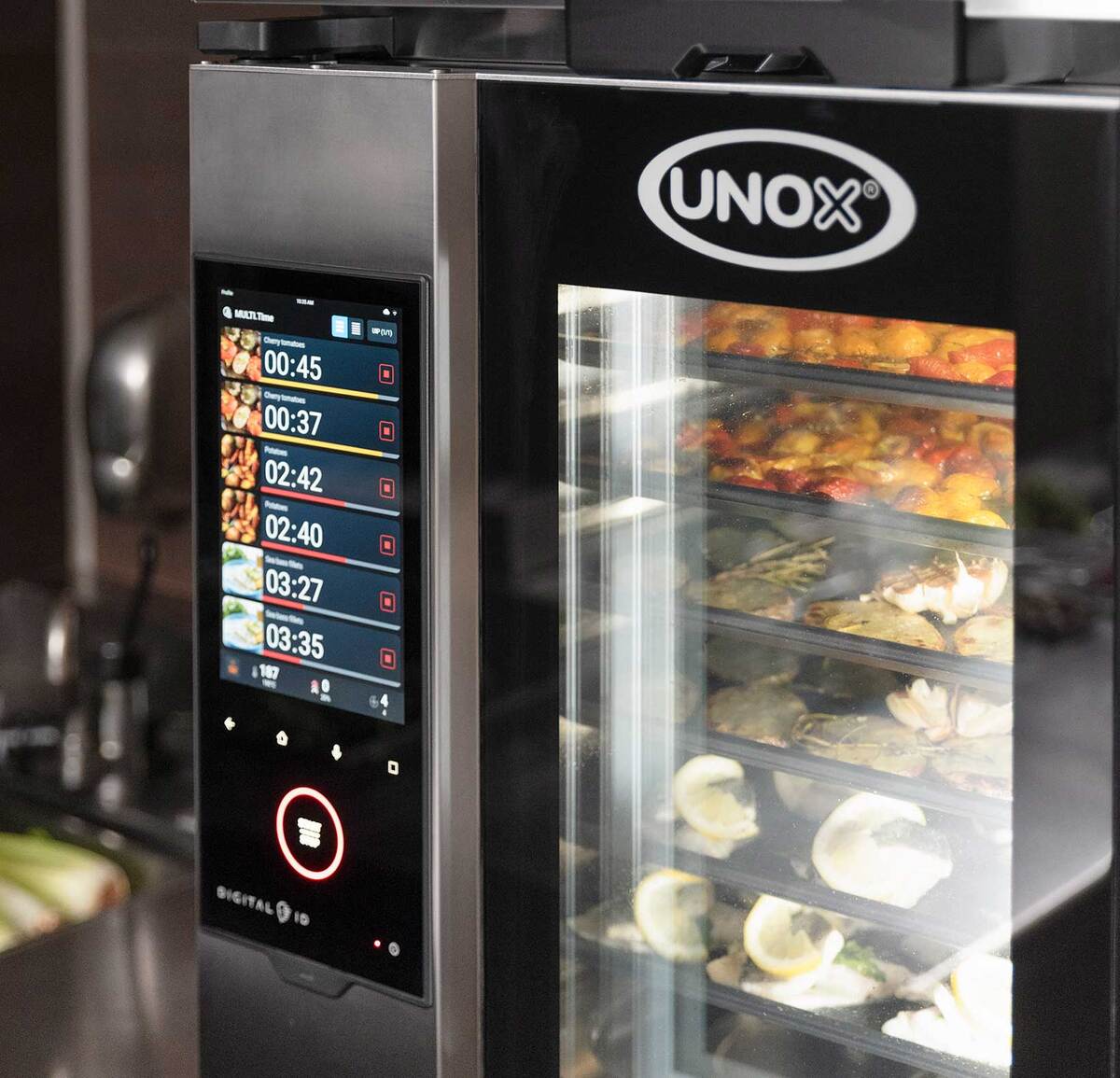 The ovens use the Digital.ID platform, which offers customisable programmes, user profiles and cloud access. Features like Hey.Unox voice control and Optic.Cooking ingredient recognition are designed to allow easy operation and automatic cooking programme selection.