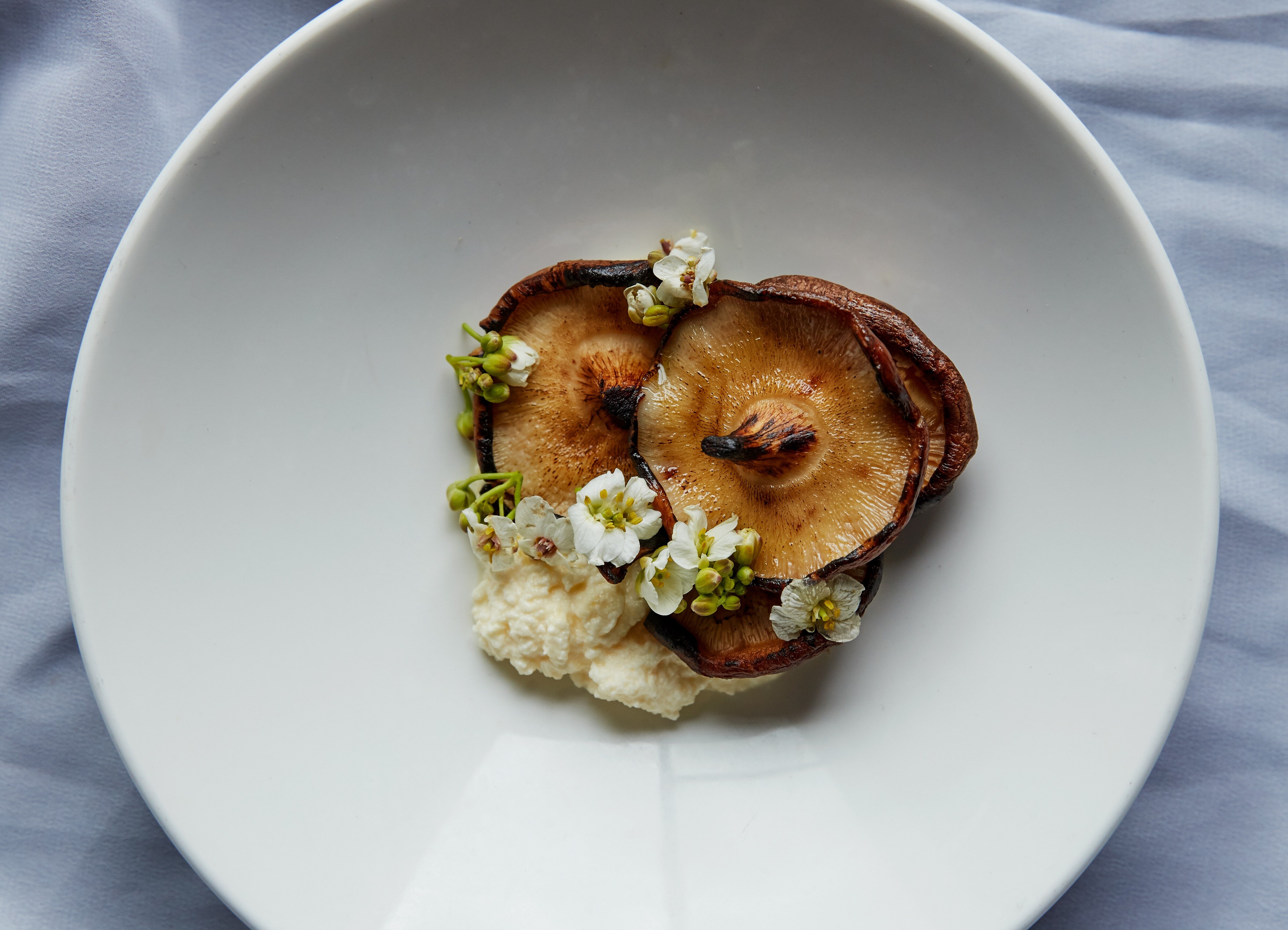 A dairy-free ‘ice-cream’ is made from the roasted skins of waxy potatoes, which creates a similar taste to salted caramel and is paired with seasonal fruits. On the current menu, golden linseeds are toasted, blended with sugar water and salt, churned to make ‘ice-cream’ and served with fig leaf oil.
