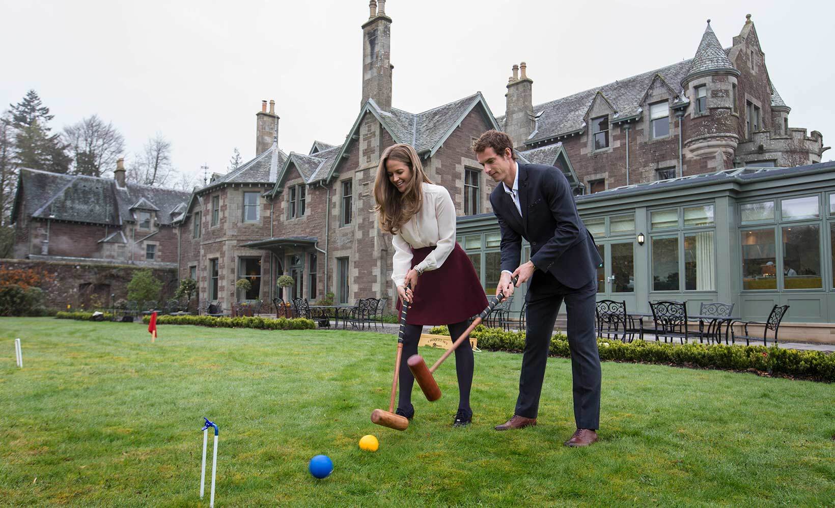 Kim and Andy Murray play croquet at Cromlix in 2016