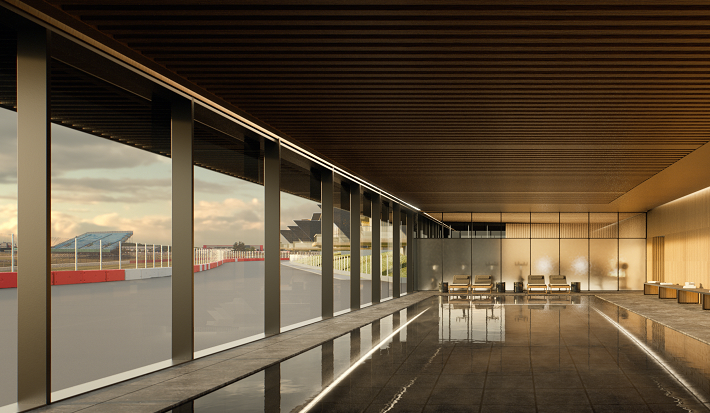 Guests will be able to watch the racing from private balconies and roof terraces or a clubhouse with sightlines of nine of the racetrack’s corners, including the Copse and two high-speed straights.